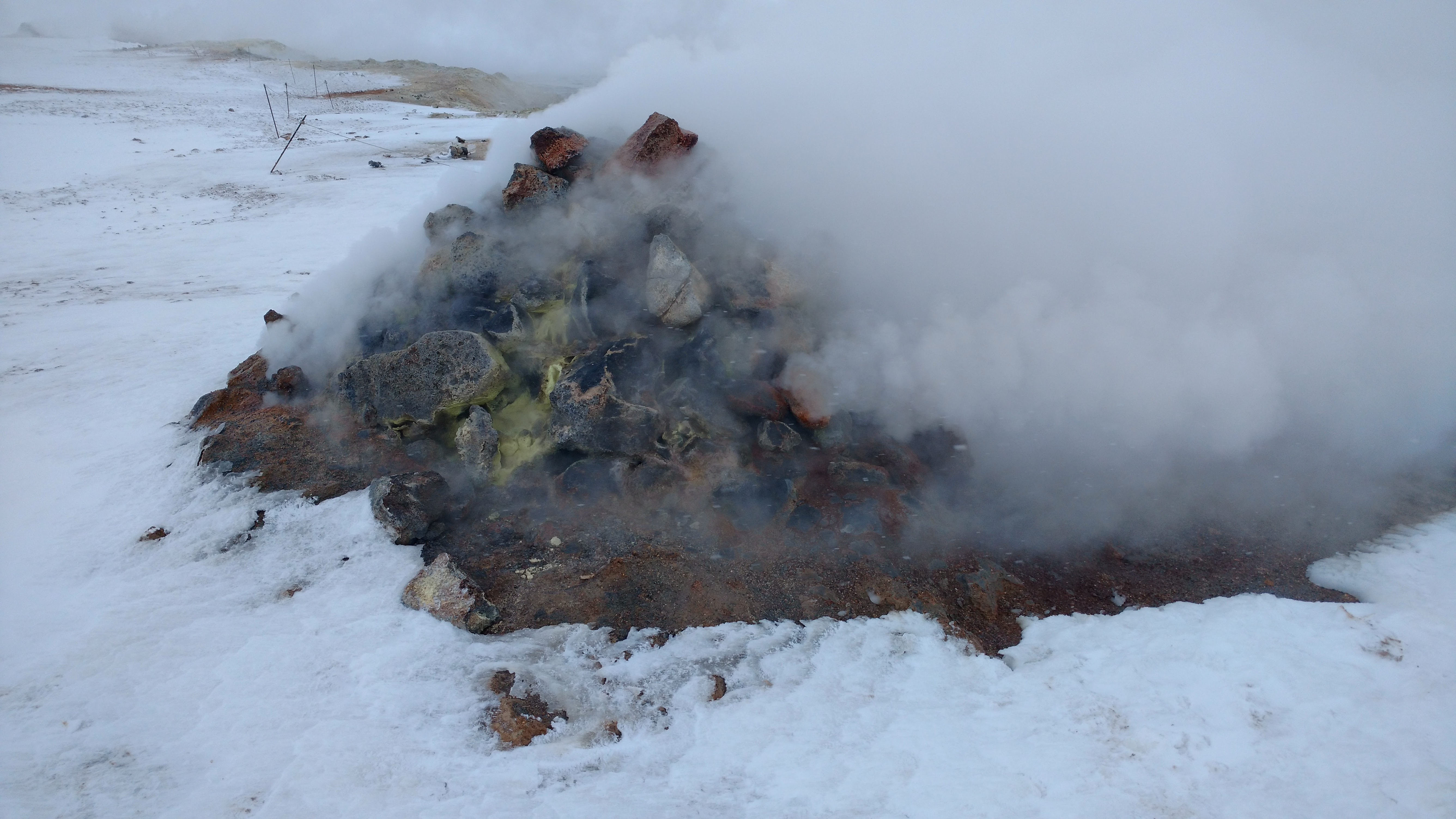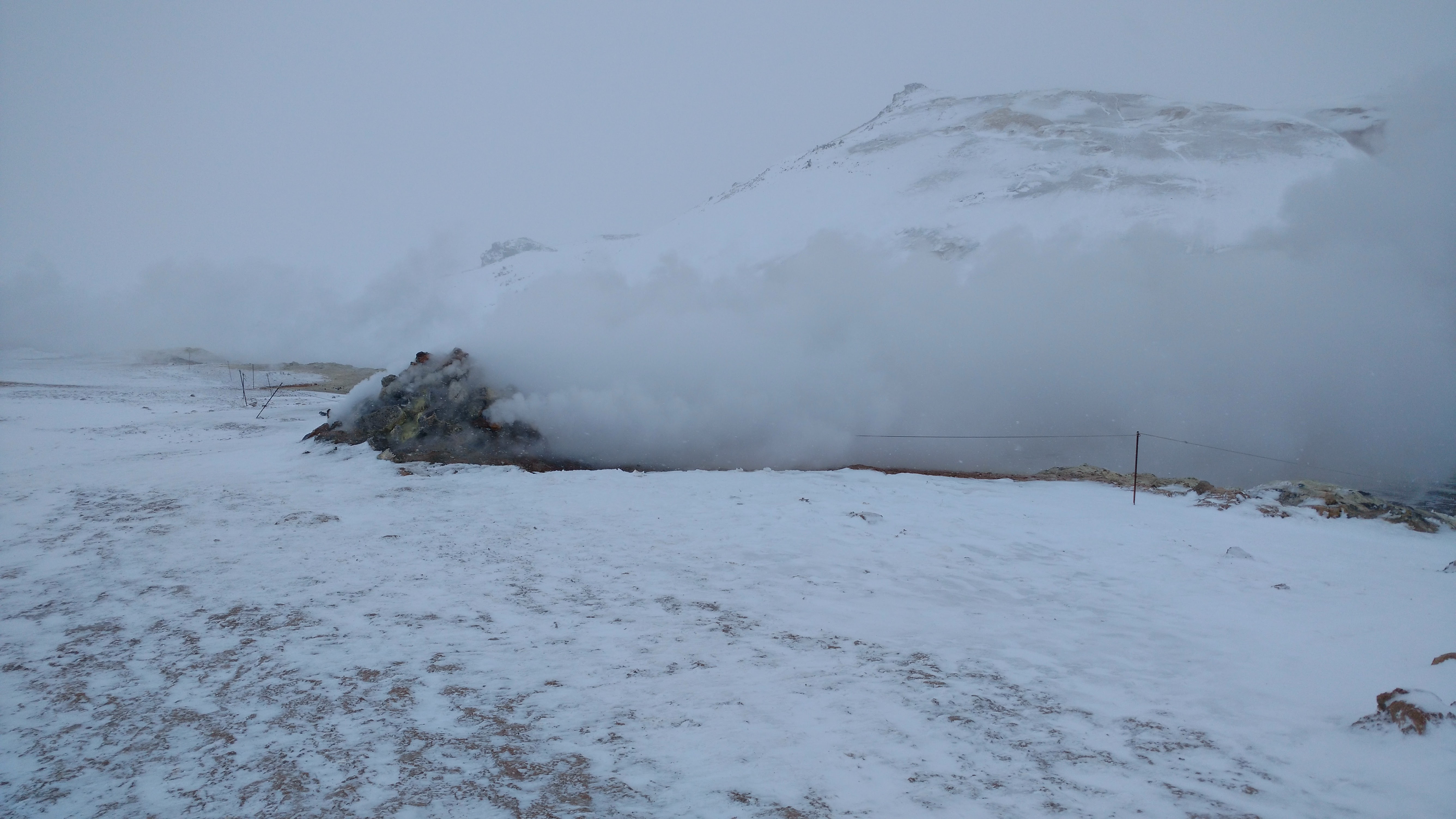 We stopped to look at these rock formations kind of like inukshuks that were used to guide travellers before highways were made. Then we stopped at one end of some kind of underground volcano that spewed sulfur in a handful of spots (the associations of sulphur with hell now make all sorts of sense – it smelled absolutely nasty).