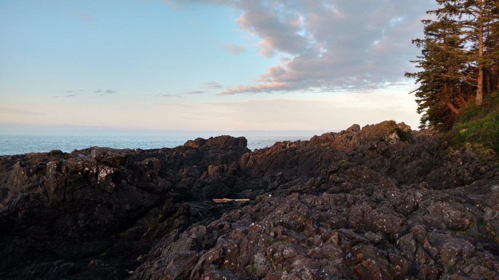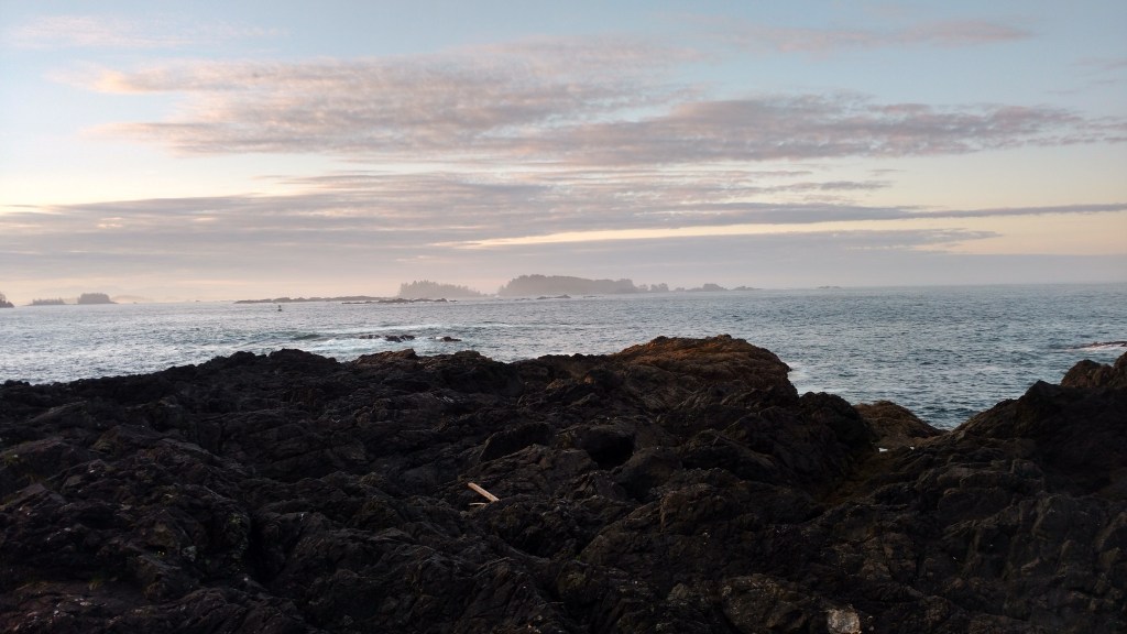 The last time I was in Ucluelet we slept in the back of a rented SUV. It was one of those newer models where you just press a button to start it. When our alarm went off at 5am, and I started the car to drive away for a quick walk before the drive back to Nanaimo to return the car, then ferry back to Vancouver for the flight home, the doors suddenly locked themselves like a horror movie and the car alarm started going off. I guess the keys weren’t in the front seat, and if they’re far enough away from the ignition, it thinks you’re stealing it. I tore through all our bags trying to find the keys to turn off the alarm, which took several minutes. I wonder how many people on that residential street woke up that morning worried about auto theft and called the cops. More likely they chalked it up to dumb tourists illegally camping overnight down the street from their houses.