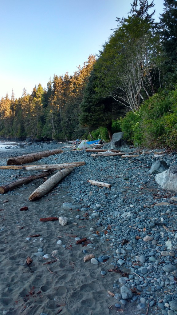 I camped at Sombrio beach once, in the middle of the park, which is known as a party beach at certain times of the year. Cops closed off the roads that go up to the beach to discourage teenagers from going there, so we had to walk a few km from the highway with our backpacks to get there. For a southern Ontario born city boy like me, this was already way out of my comfort zone at the time.
