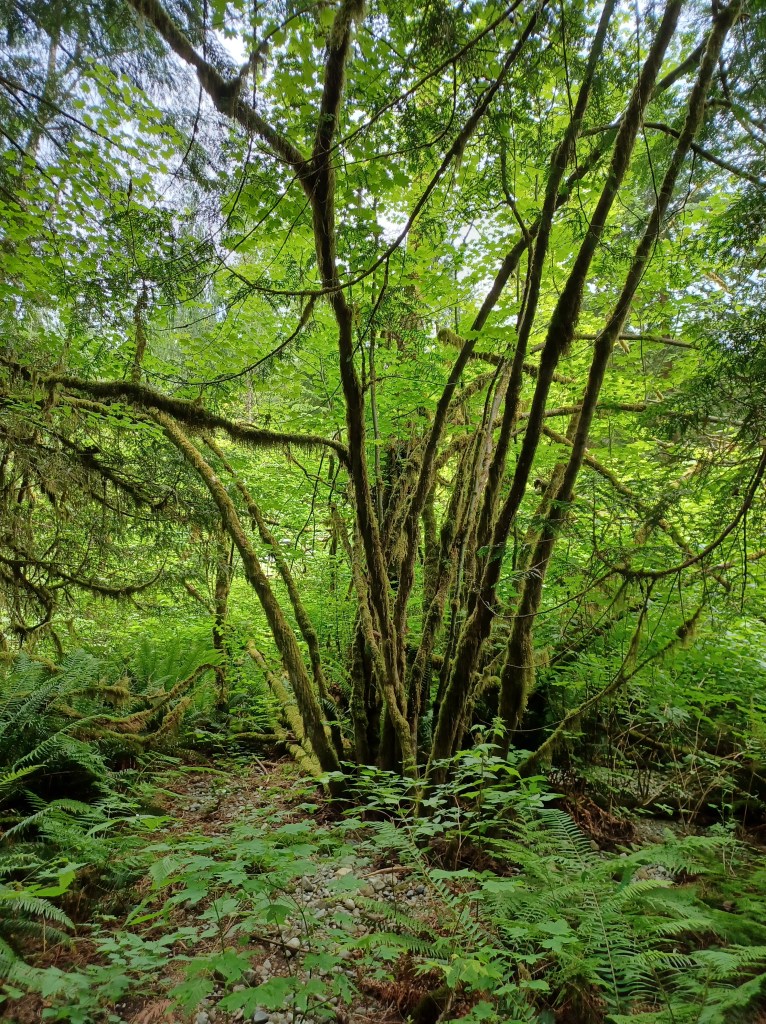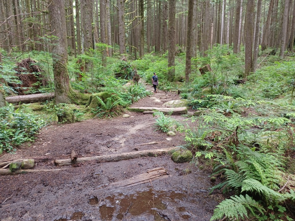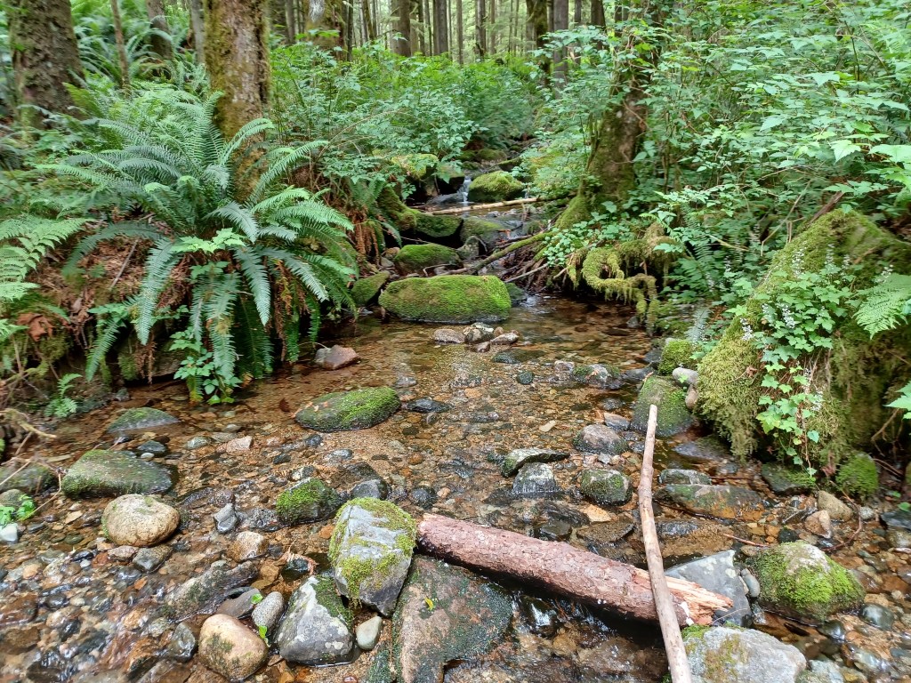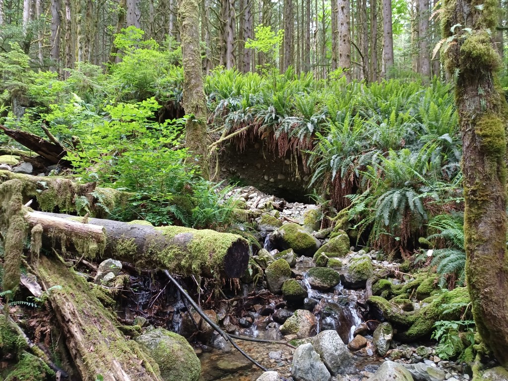 The trails themselves felt like pretty typical BC forest without having anything particularly unique for the region, at least to these untrained eyes. That said, there doesn’t need to be anything particularly unique for it to be beautiful. Big trees, moss, streams, hills, all the main things.