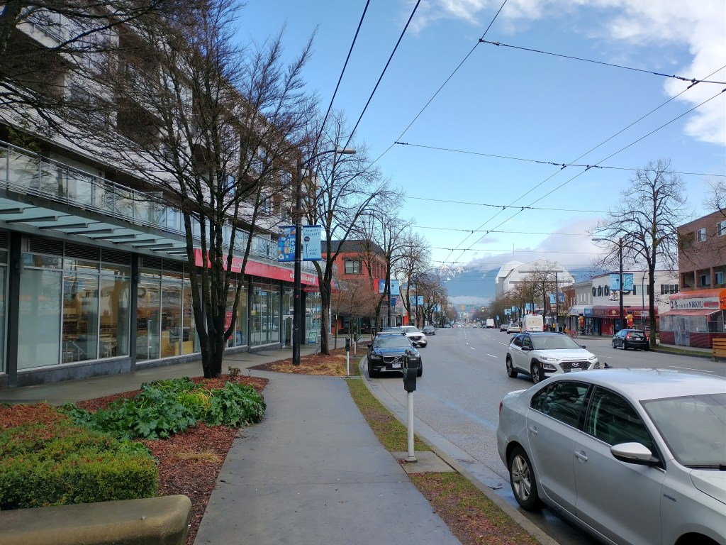 The neighbourhood, and Vancouver in general, does a good job at keeping traffic off the side streets, which makes it quieter and less busy where houses are. However, it means that the major streets are packed. I lived on one of the busiest parts of the neighbourhood, flanked by what are probably the two busiest east-west streets and the two busiest north-south streets for car traffic in the whole city. It’s strange to me that you can have one of the coolest enclaves with side-by-side storefronts but on a seven-lane street. The patios, and walking in general, would be a lot more ‘pleasant’ if the traffic were curtailed, but in a city like Vancouver without a highway running through it, it’s going to be hard to change that unless cars are significantly reduced or re-directed.