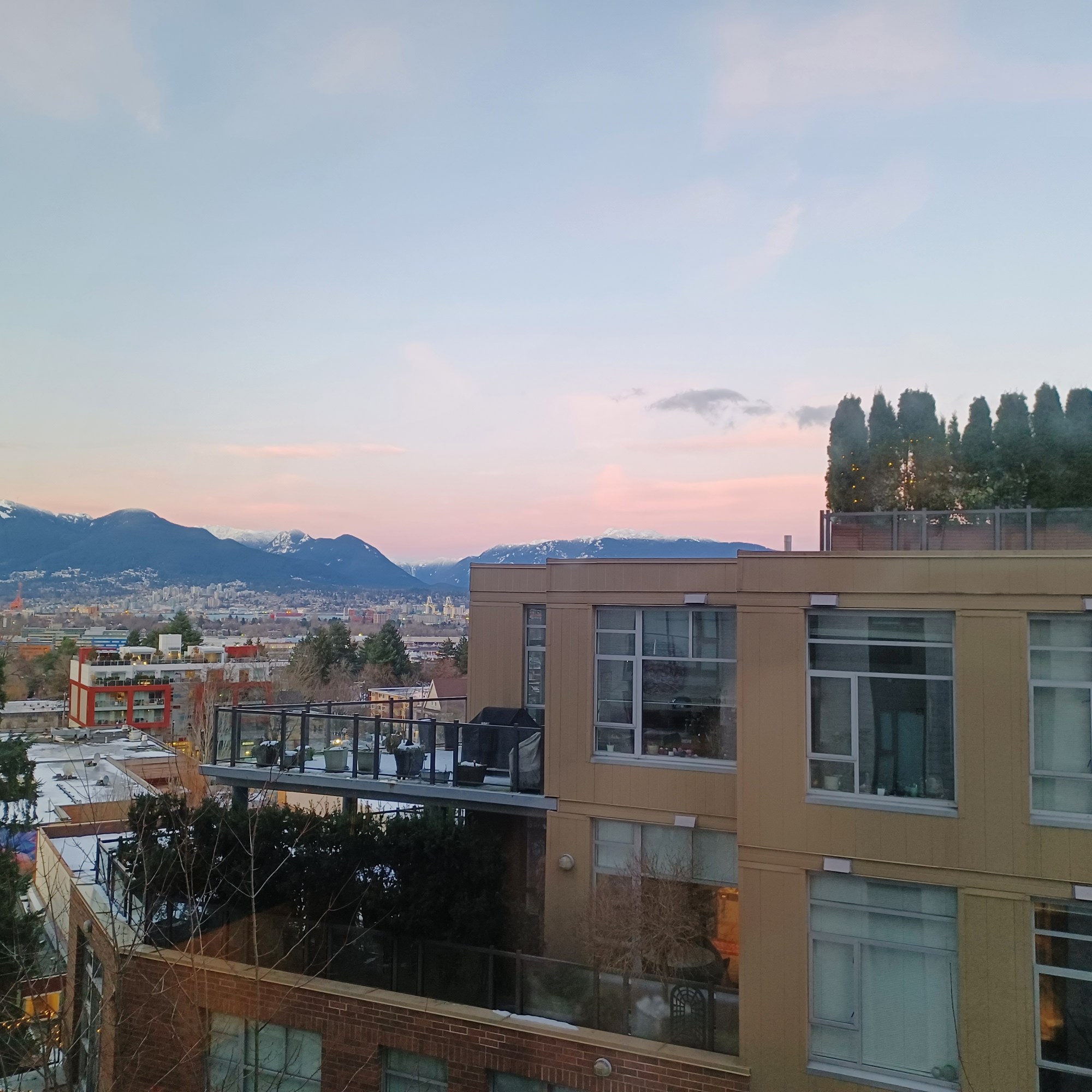 I got tired of the noise of traffic that permeated up through my closed windows, but never the views from my balcony. Through the smallest window in my apartment there was a view of the North Shore mountains, and if you went on the balcony, you’d have a more fulsome view. I always wished I was facing the North more and that I had wall-sized windows in that direction so I could always stare, which just goes to show that people always want more even if they have a slice of beauty more than most.