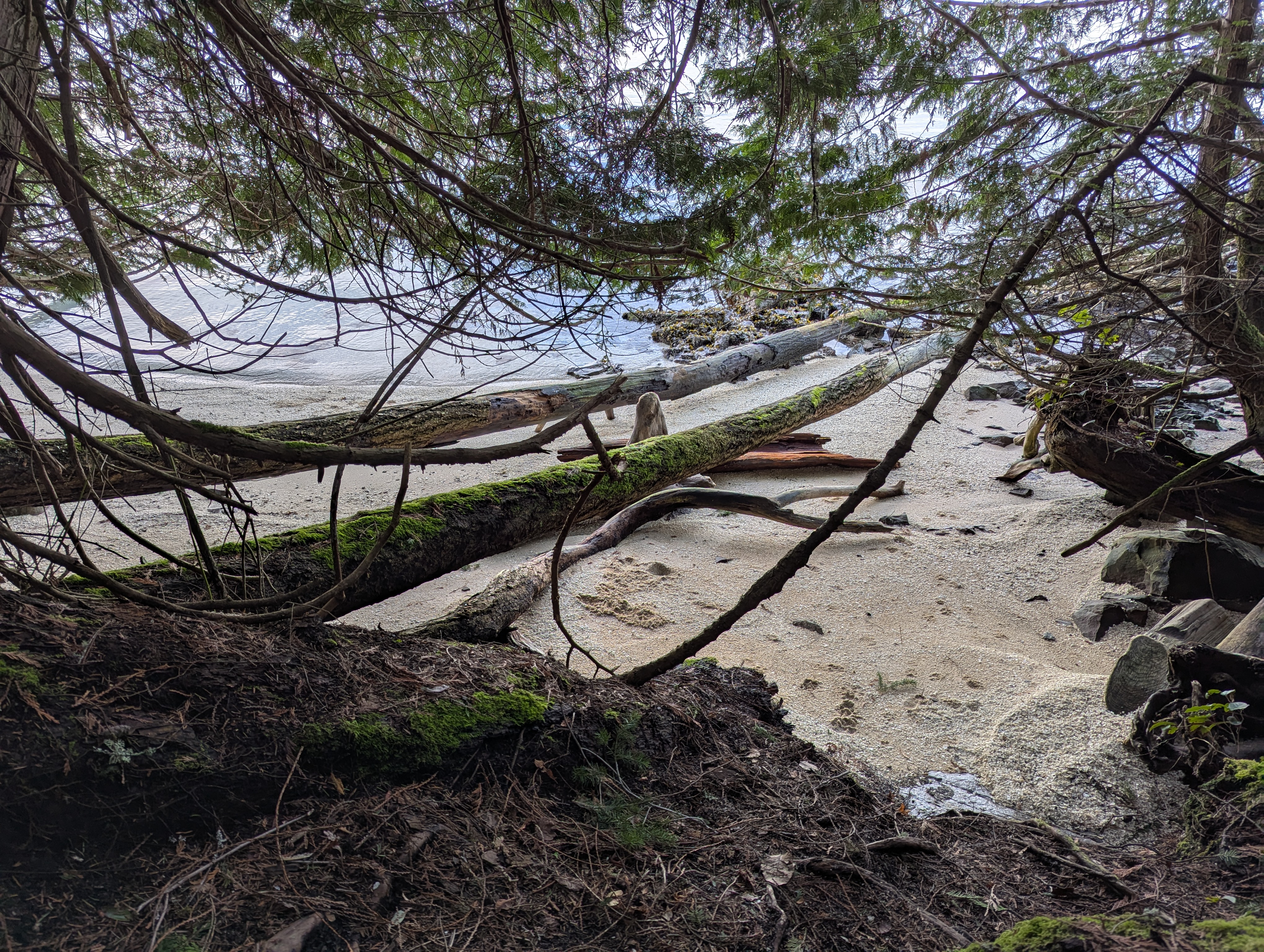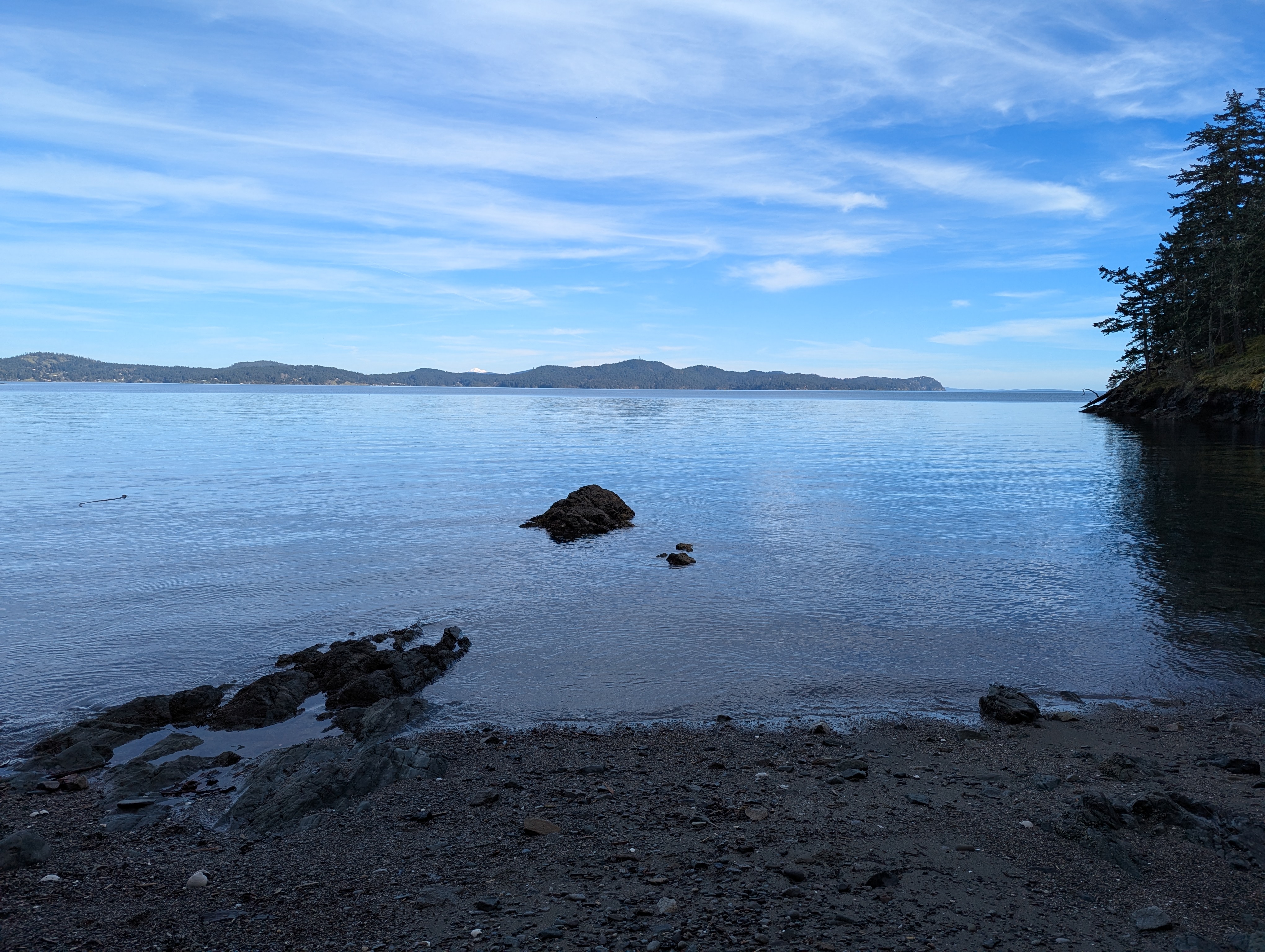 The second hike was at Ruckle Provincial Park. Pretty much the whole time on the trail you’re on the edge of the island looking at the water, in and out of foresty areas, with many opportunities to climb down some rocks and sit right at the shore, or sit at some small sand beaches.